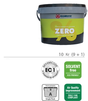 Двухкомпонентный эпоксидно-полиуретановый клей нового поколения без содержания воды и растворителей для приклеивания деревянных полов любых размеров на цементную стяжку, в том числе со встроенной системой «Теплый пол», а также на невпитывающие поверхности (керамическую плитку, шлифованный камень, мрамор и т.д.). Также идеально подходит для укладки паркетной и инженерной доски. Теперь клей Zero% представлен в новой версии с улучшенным показателем пластической деформации, благодаря чему стал легче наноситься, и обладает отличной высотой гребня. Отличительными особенностями клея Zero% являются практически полная нечувствительность к изменениям температуры воздуха (сезонность работ), полное отсутствие запаха как до, так и после смешивания компонентов, а также отличной полимеризацией и водостойкостью при любых условиях окружающей среды. Помимо этого был значительно улучшен показатель среднего расхода продукта. Высокий коэффициент эластичности после отверждения компонентов наряду с непревзойденными характеристиками адгезии и прочности делает Zero% действительно революционным клеем.